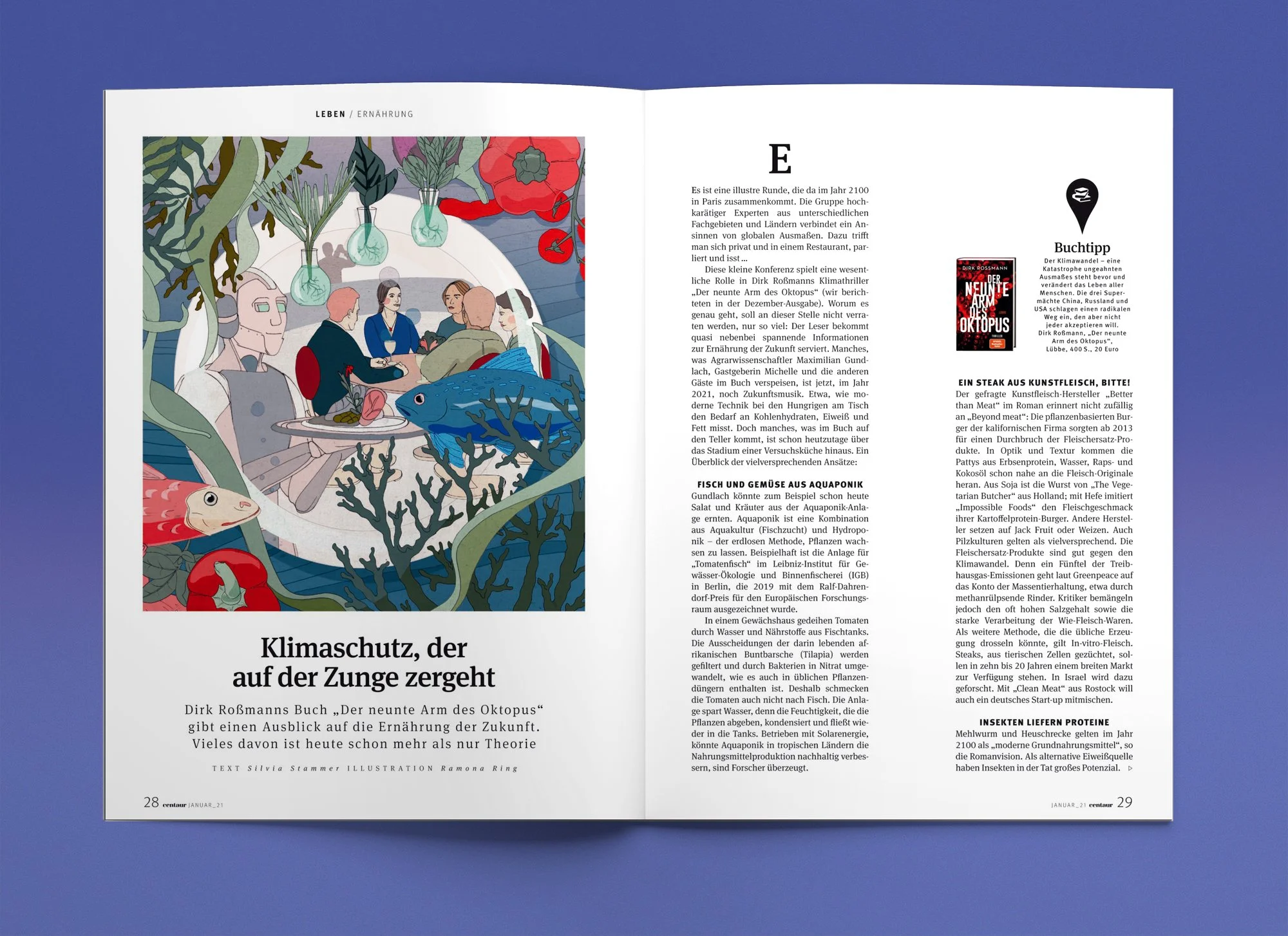 Cover and inside illustrations for CENTAUR magazine and their presentation of a novel by Dirk Roßmann.
